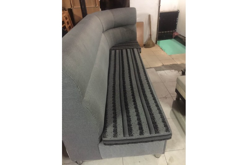 • Tình trạng: Bộ sofa vải góc thanh lý tình trạng còn như mới 90%. Chất liệu sofa bọc bằng vải nỉ sọc nhiểu đen trắng, lớp vải bọc không khác gì so mới, hoàn toàn không bị trầy xước, sờn hay bung chỉ gì, nệm bọc ngồi rất dầy, cực kì êm. Phần khung gỗ bên trong vẫn còn chắc chắn cứng cáp, bên dưới có lớp đế chân nhôm bọc nhựa cứng cáp, chịu lực cao. Tình trạng sản phẩm gần như mới, hầu như không bị một lỗi nào !!!