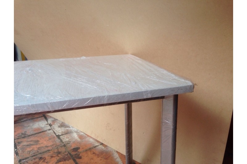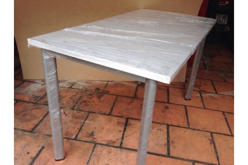 - Chất liệu: mặt bàn ván MFC màu kem (rất đẹp), ván dầy 18mm. Chân bàn sắt sơn tĩnh điện hình oval