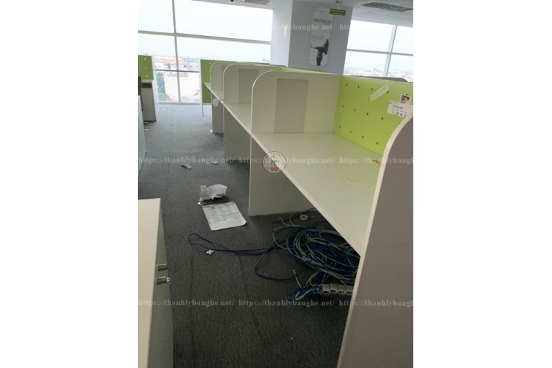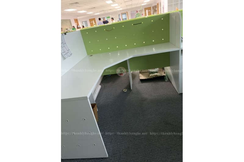 - Bàn làm việc chữ L cũ thanh lý, bàn cũ thanh lý dánh cho nhân viên, hoặc bàn làm việc cho trưởng phòng, với phòn cách trẻ trung, năng động được phối hợp với hai màu trắng xanh, mang lại cho bạn một không gian làm việc sáng và năng động.