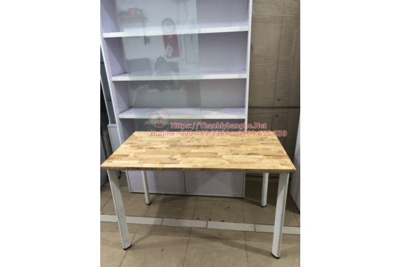 Thanh lý bàn làm việc mặt gỗ ghép chân oval cũ MS865