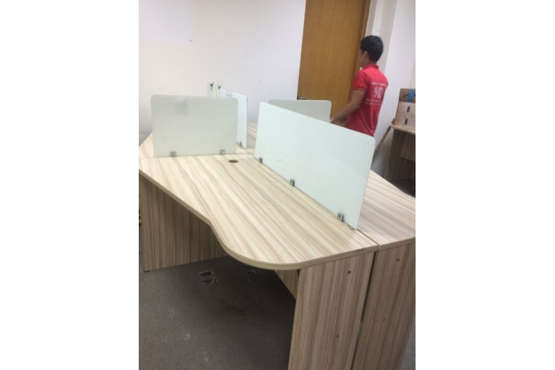 - Mô tả: Bàn làm việc nhóm làm từ gỗ công nghiệp MFC. Ưu điểm của chất liệu này là được phủ melamine có tác dụng chống trầy xước và chống thấm nước đồng thời tạo hiệu quả thẩm mỹ cho sản phẩm. Bàn làm việc nhân viên có vách ngăn kính sang trọng, vừa tiết kiệm diện tích vừa tạo không gian riêng biệt nhưng vẫn mang tính chuyên nghiệp cho văn phòng của bạn. .