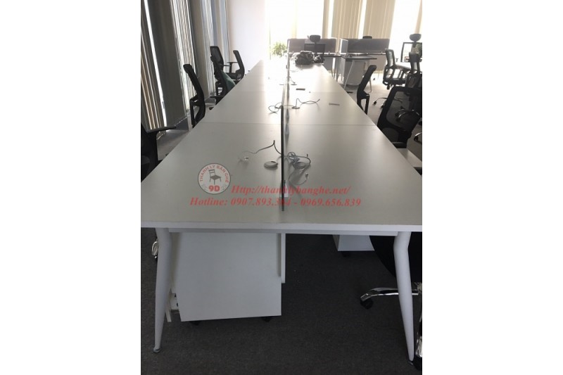 Thanh lý bàn làm việc nhóm 1m2 x 4m8 màu trắng