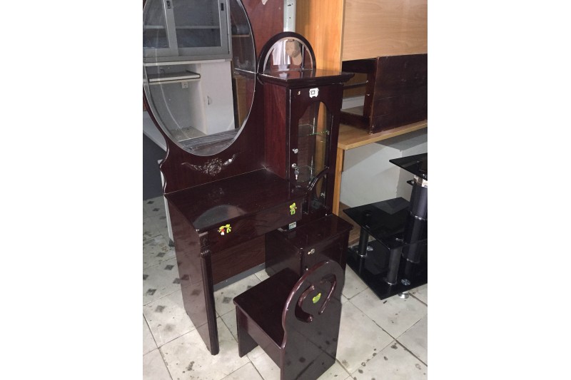 - Mô tả: bộ bàn trang điểm thanh lý chất liệu MDF công nghiệp, mặt ngoài phủ lớp ván gỗ veneer xoan đào. Bàn trang điểm có kiếng, thiết kế kiểu cổ điển, tông màu nâu cánh gián rất đẹp.