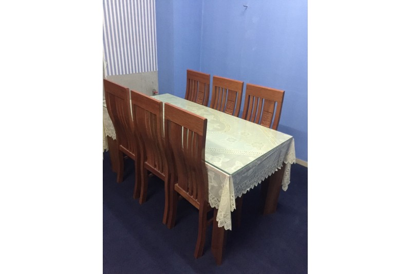 • Mô tả: Bộ bàn ghế gỗ ăn trong gia đình, chất liệu gỗ cứng cáp bền tốt sử dụng được lâu theo thời gian, 1 bộ gồm 1 bàn gỗ kèm mặt kính với 6 ghế gỗ, thiết kế tỉ mỉ khéo léo, họa tiết hoa văn trên lưng dựa ghế, bộ bàn ghế ăn bằng gỗ dễ dàng phối hợp với những kiểu nhà cổ điển hay phong cách đơn giản.