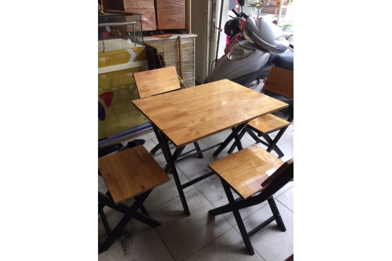 - Mô tả: Bộ bàn ghế quán ăn, hay bộ bàn ghế cafe chất liệu gỗ cứng cáp còn tốt sử dụng được lâu theo thời gian, bàn ghế làm bằng gỗ ghép, bộ bàn ghế gỗ thích hợp với những quán ăn gia đình hay là quán cafe take away. Đặc điểm gọn nhẹ dễ dàng sắp xếp và dọn dẹp, tiện lợi trong việc sắp xếp và bài trí trong quán.