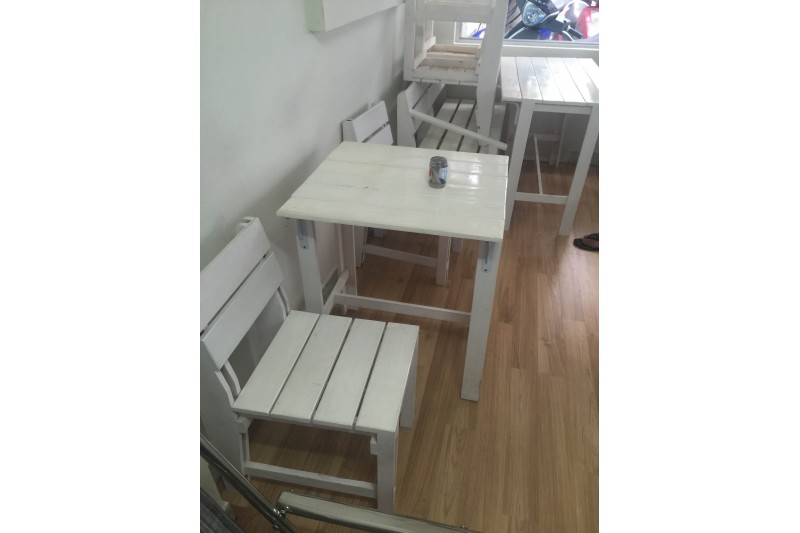 - Mô tả: bộ bàn ghế quán cafe thanh lý, sơn trắng tinh tế trông cực đẹp, chất liệu bằng gỗ thông sấy đã qua sử lý chống mối mọt. Bộ gồm 2 ghế đơn + 1 bàn. Khung ghế gỗ đơn và bàn gỗ được đóng rất chắc chắn, chịu lực cao. Không bị lung lay hay ọp ẹp nhưng một số nơi thanh lý khác.