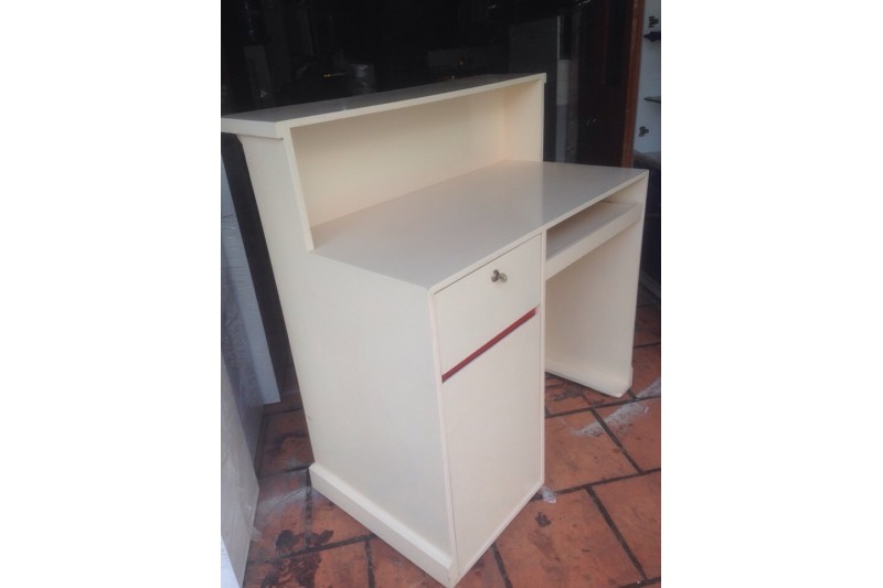 • Mô tả: Quầy lễ tân trắng đỏ, kích thuớc 100x50, có hộc kéo và khóa để cất giử đồ, có lưỡi phím để tiện lợi cho việc sử dụng bàn phím máy tính bàn, quầy thiết kế nhỏ gọn tiện lợi dễ sắp xếp.