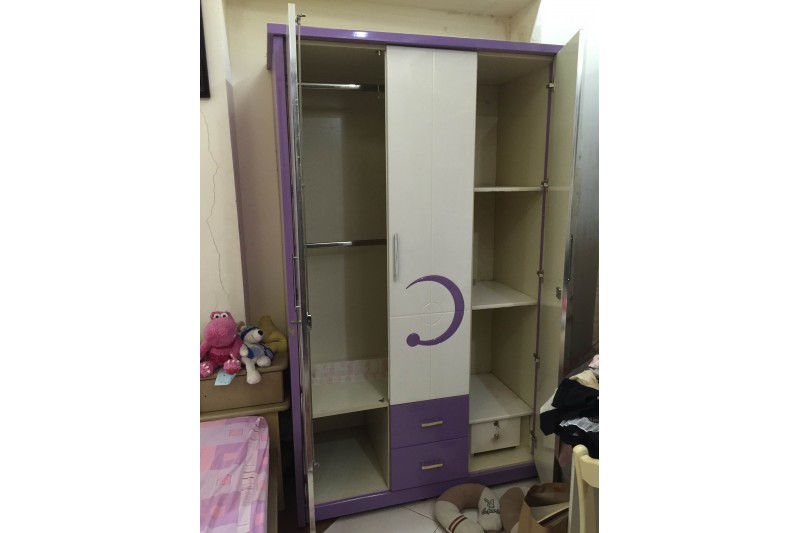 - Thông tin chi tiết sản phẩm : Tủ áo 3 cánh MDF, chất liệu gỗ cao cấp, màu sắc tím và trắng