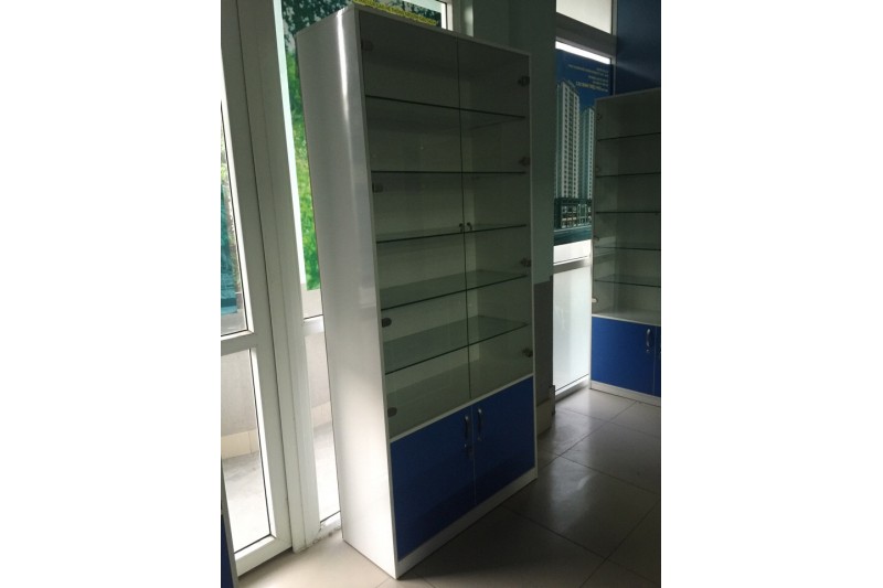 - Mô tả: Tủ kính trưng bày 5 tầng, cửa kính tiện lợi, bên dưới có hộc tủ 2 cánh, tủ kính trưng bày thiết kế độc đáo, cao, và nhiều tầng dễ dàng cho người sử dụng để được nhiều đồ vật phân loại mà ko sợ thiếu diện tích sử dụng. khung ván MDF cứng cáp dược phủ Melamin sáng bóng.