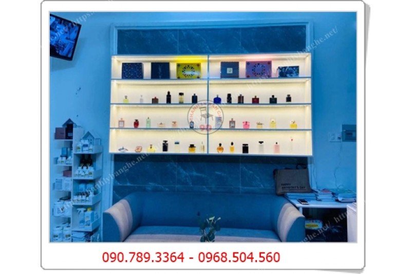 - Công dụng: Tủ treo tường giúp bạn trưng bày tiết kiệm được không gian, tủ làm bằng gỗ công nghiệp, có cửa kính, khóa và được trang bị đèn led trợ sáng, tủ thích hợp cho tiệm Nail, hoặc các tiệm trưng bày nước hoa mỹ phẩm...